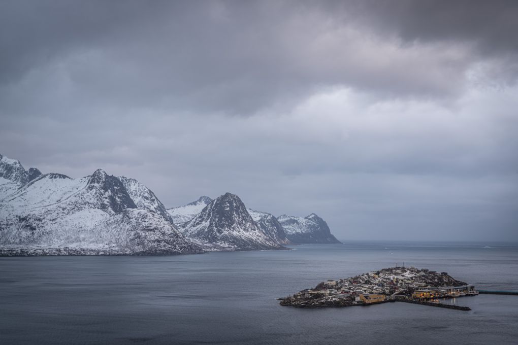300km north of the Arctic Circle lies Senja - the second largest Island in Norway. It covers over 15,000 km and is surrounded by the Norwegian Sea. The western side is a very mountainous and hostile location - particularly in winter whereas the east and south are relatively flat and lush. Senja can be accessed by one bridge via Finnsnes or from a small number of ferry crossings dotted around the Island.